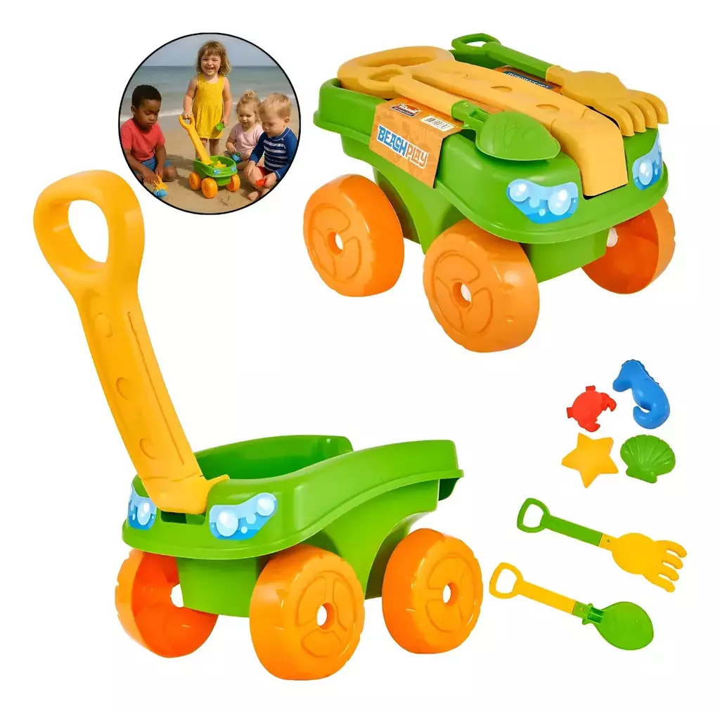 Leve e fácil de transportar, o carrinho é ideal para acompanhar as brincadeiras em diferentes ambientes, promovendo momentos de entretenimento ativo e aprendizado.