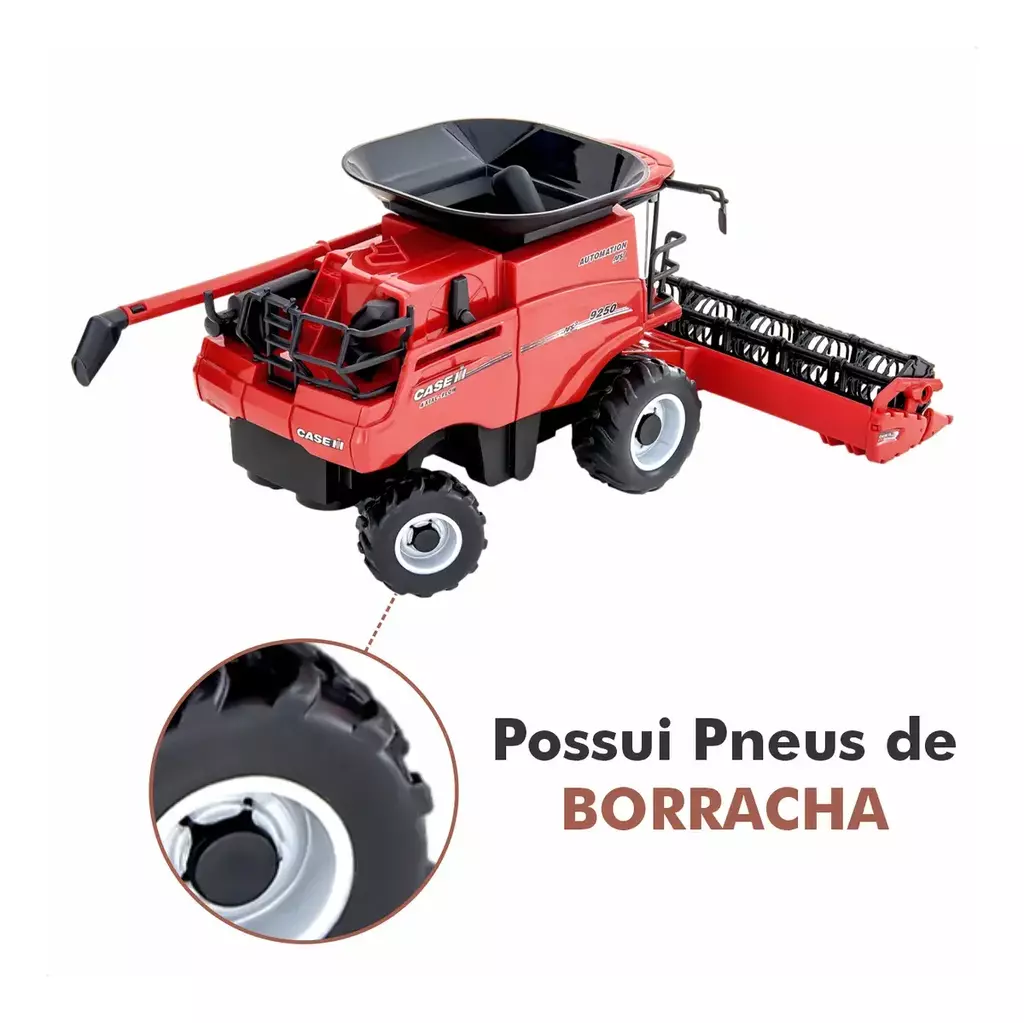 Conteúdo do kit: 1 - Colheitadeira de Grãos Axial 9250 Miniatura Case Dimensões Aproximadas da Colheitadeira Comprimento: 29 cm Largura: 19,5 cm Altura: 19 cm Cerificado de segurança INMETRO Nº 009922/2019 Garantia do fabricação: 30 dias contra defeito de fabricação