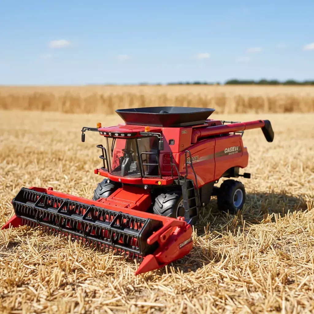 A Colheitadeira Axial Case Agricultura de brinquedo é uma réplica altamente detalhada das colheitadeiras da linha Axial-Flow 9260 da Case IH, conhecida por sua eficiência na colheita de grãos.